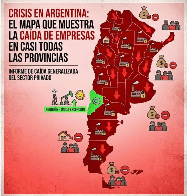 Un informe revela un panorama crítico para el sector privado, con una disminución generalizada en la cantidad de empleos y entidades operativas, dejando a Neuquén como la única excepción.